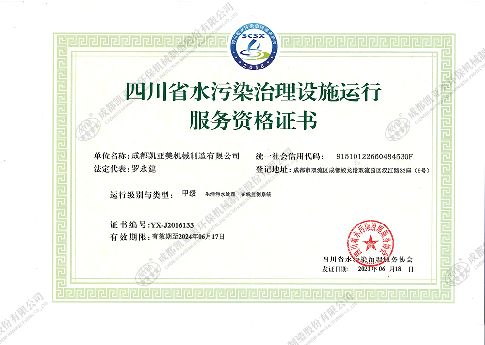 四川省水污染治理設(shè)施運行-服務(wù)資格證書